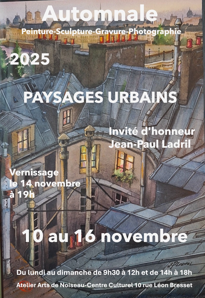 Exposition annuelle autour du thème « Paysages urbains ».Au programme : invité d’honneur, artistes de la région et élèves de l’école Jean-Jaurès de Noiseau qui exposent leurs œuvres (peinture, sculpture, gravure, photographie). Dates : du lundi 10 au dimanche 16 novembre 2025Horaires : tous les jours de 9h30 à 12h et de 14h à 18h
